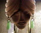 custom studio hand built jewelry. amazing color. large magnificent one of a kind ooak. ONE NOIR GODDESS FEMALE portrait custom hand made jewelry older PENDANT. LARGE SILKY CHATOYANCY OR SHEEN, SEE, NATURAL OBSIDIAN SHEEN SEE PICS SHE'S GORGEOUS. WITH JADES OR GREEN STONE CARVED EARRINGS. USED GREAT OLD PIECE ESTATE FIND MEXICAN HEAD FACE CARVING IN NATURAL GEMS LOOK DIFFERENT IN DIFFERENT LIGHT, SHOWN WITH LAMP AND IN NATURAL LIGHT HERE. SHE COMMANDS ATTENTION. FABULOUS THANK YOU FOR YOUR VIEW OR FOR KEEPING A SMALL BUSINESS THRIVING, AND DO HAVE A GREAT DAY OR NIGHT. INVENTORYKARMOIRED3