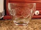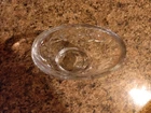 4 inches tall oval shape 5 and 1/2 inches at widest point. Lead crystal